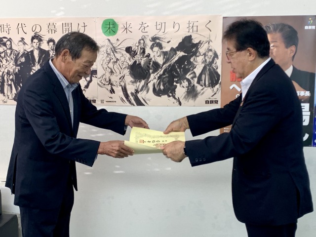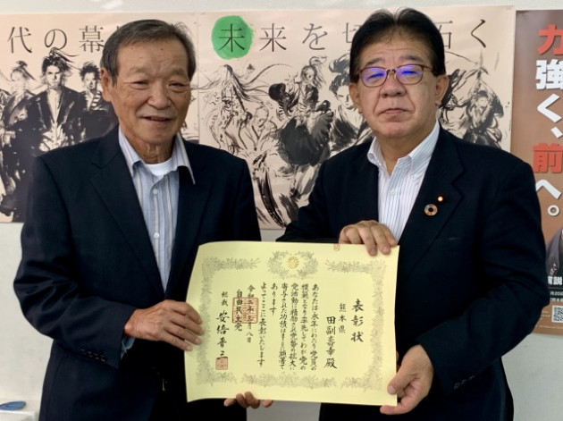第87回自由民主党定期党大会「優秀党員表彰」八代市千丁町・田副壽幸氏へ表彰状 授与(八代事務所)