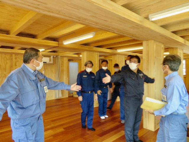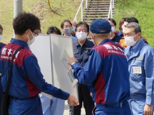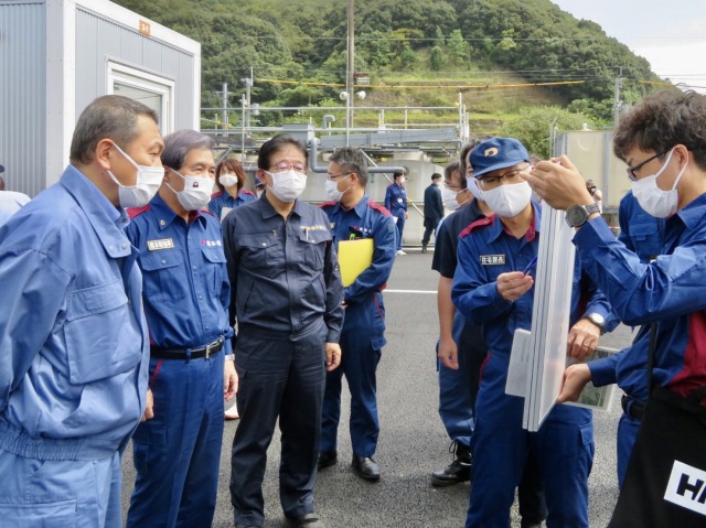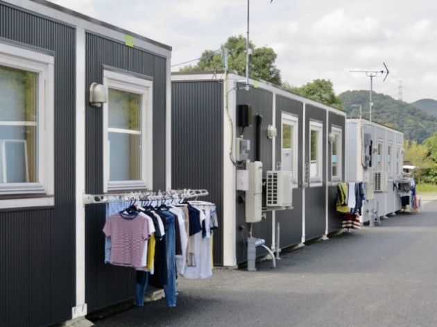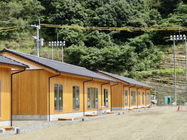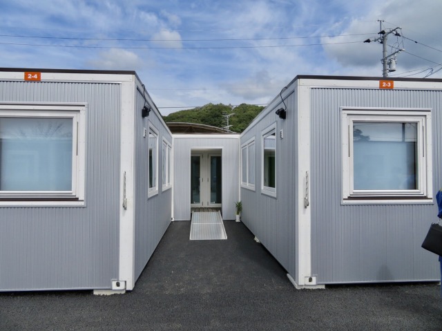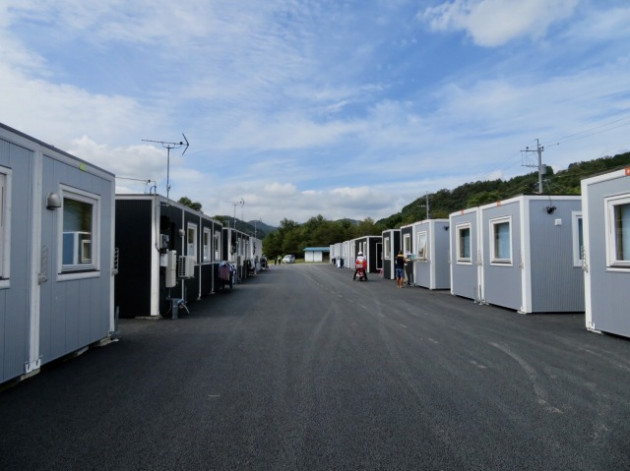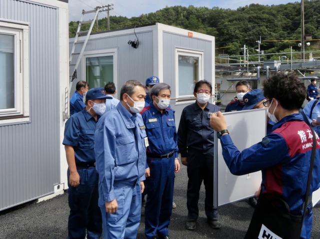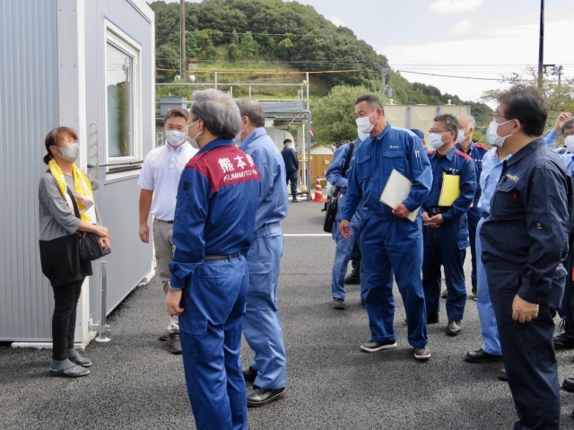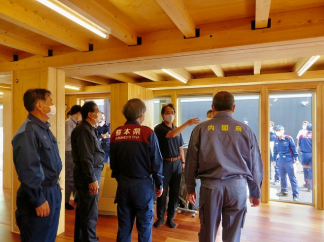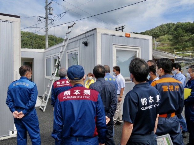 小此木八郎 内閣府特命担当大臣〔防災担当〕「令和2年7月豪雨に係る被害状況等の現地視察」③仮設住宅(球磨村総合運動公園内)