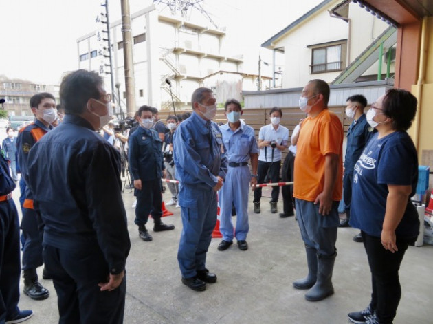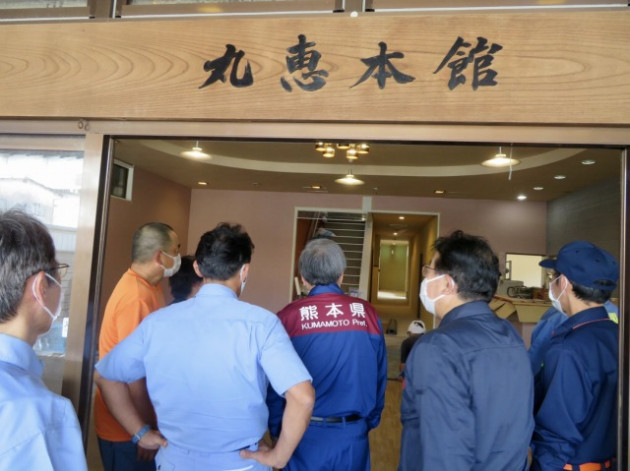 小此木八郎 内閣府特命担当大臣〔防災担当〕「令和2年7月豪雨に係る被害状況等の現地視察」⑧丸恵旅館(人吉市)