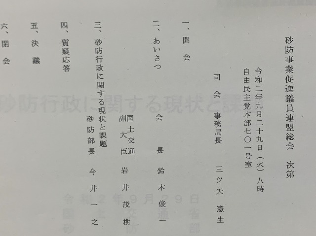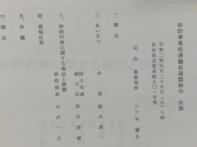 自民党 砂防事業促進議員連盟 総会 ※幹事