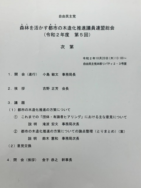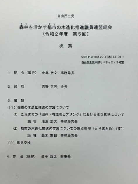 自民党「森林(もり)を活かす都市(まち)の木造化推進議員連盟」総会 ※幹事長