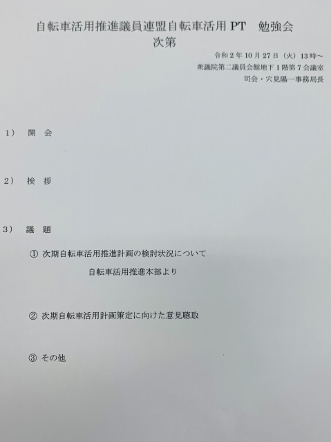 超党派 自転車活用推進議員連盟「自転車活用PT」 ※幹事長