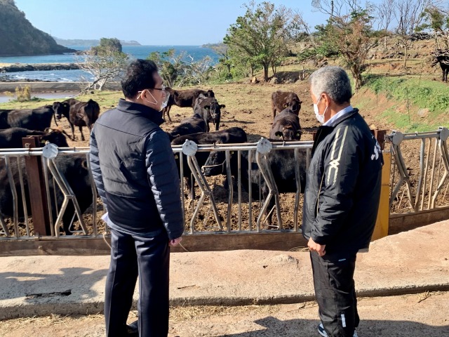 岸田文雄 前自民党政調会長「長崎県五島列島・小値賀町(小値賀島)訪問⑤本年度天皇賞受賞の繁殖農家 視察・意見交換」に同行