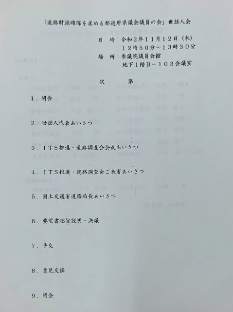 道路財源確保を求める都道府県議会議員の会「世話人会」に自民党ITS推進・道路調査会 幹事長として出席