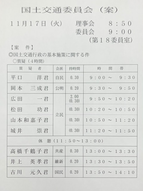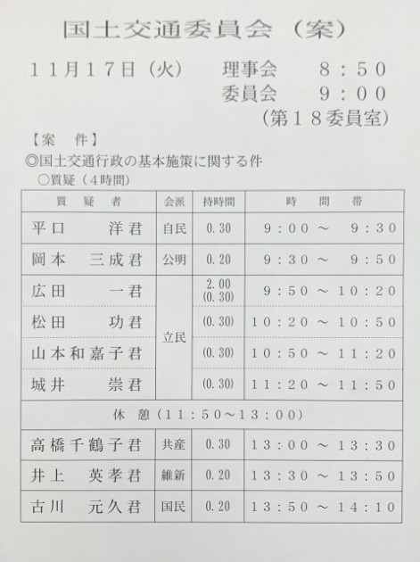 衆議院国土交通委員会「大臣所信に対する一般質疑 4時間」