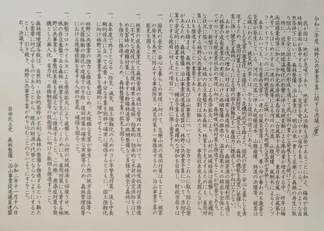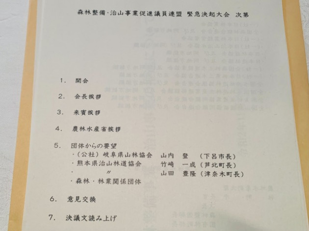 自民党 森林整備・治山事業促進議員連盟「緊急決起大会」(自民党本部8Fホール) ※自民党林政対策委員長