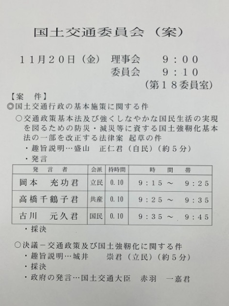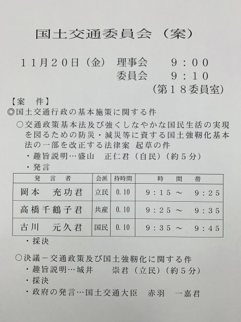 衆議院国土交通委員会「国土交通行政の基本施策に関する件」