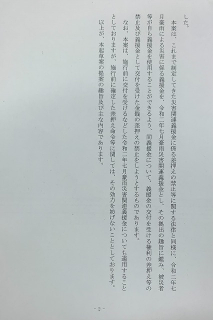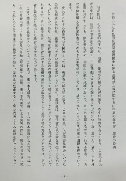 衆議院災害対策特別委員会「令和2年7月豪雨災害関連義援金に係る差押禁止等に関する法律案 起草」 ※委員長