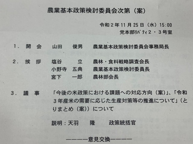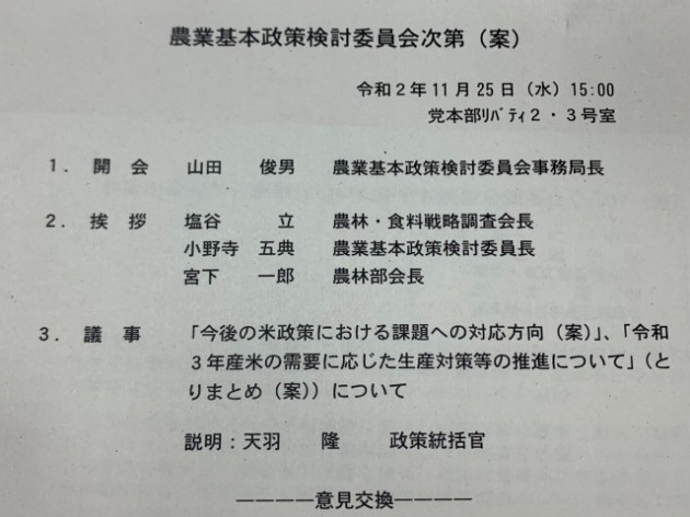自民党 農業基本政策検討委員会