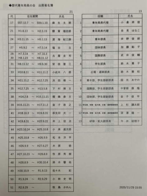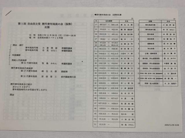 第1回 自由民主党「歴代青年局長の会」 ※第39代青年局長〔 平成15年11月21日〜平成17年11月2日 〕
