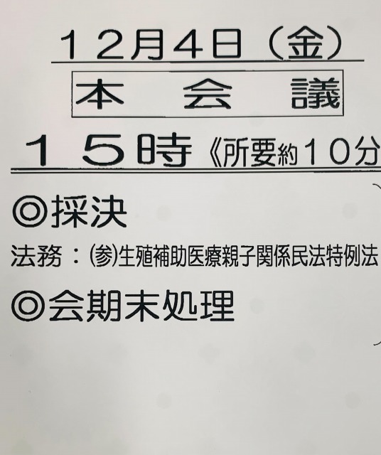 本会議「上がり法案 採決、会期末処理」