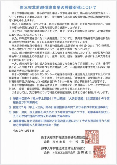熊本天草間幹線道路整備促進期成会・中村会長〔天草市長〕「熊本天草幹線道路の整備促進に関する要望」来室
