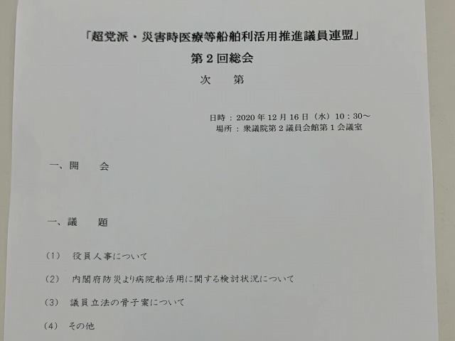 超党派「災害時医療等船舶利活用推進議員連盟」総会