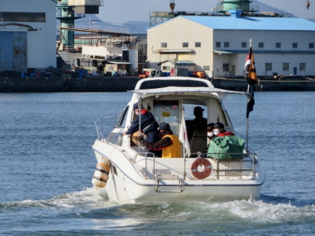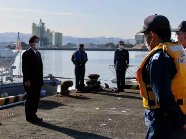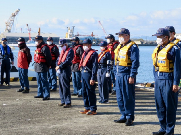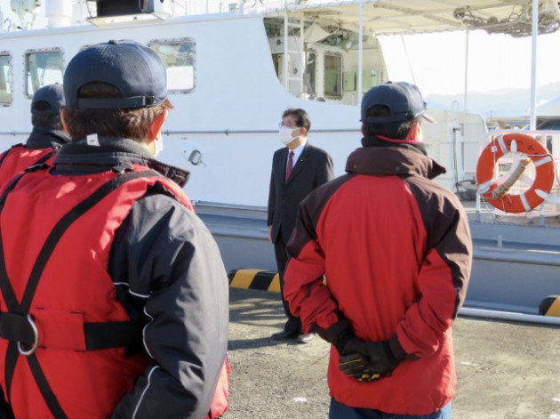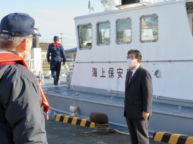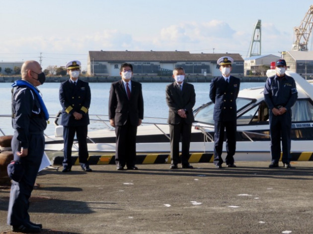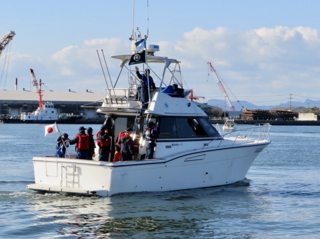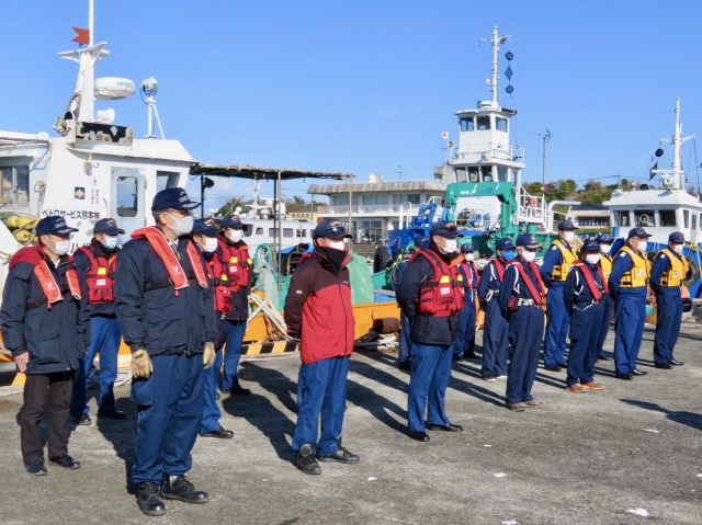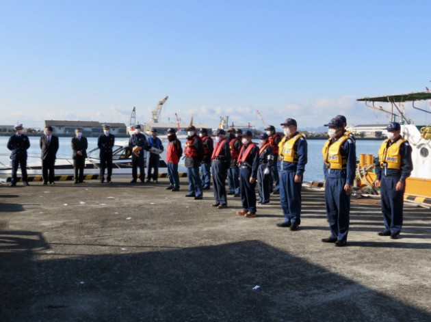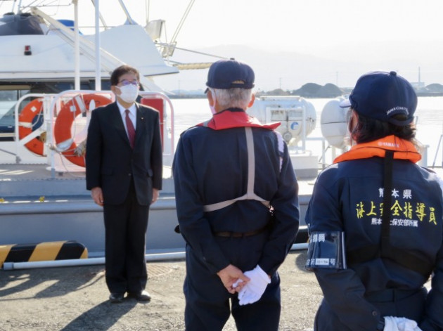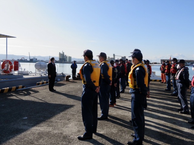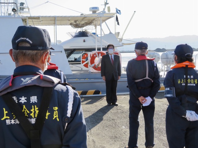 NPO法人 熊本県海難救助隊「年末研修〔八代海上保安署・八代広域消防本部・熊本県警との合同海上パトロール〕」出発式(八代内港 浮桟橋) ※自民党海上保安議員連盟 副会長