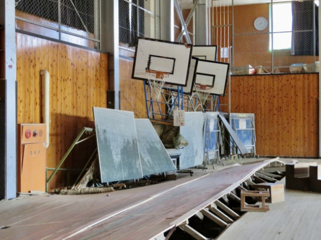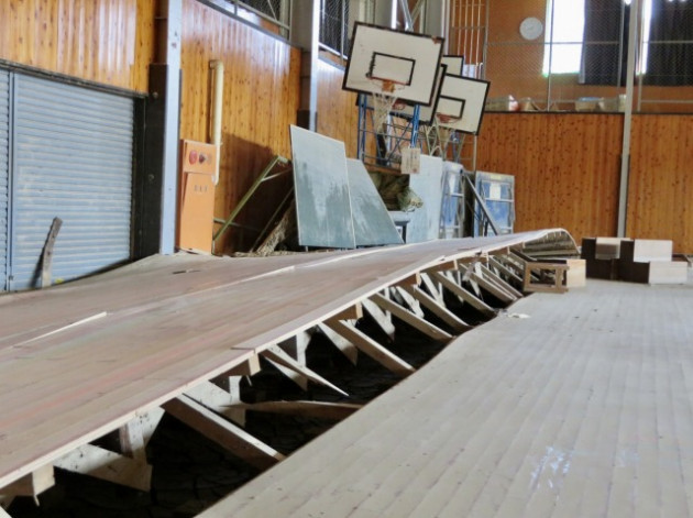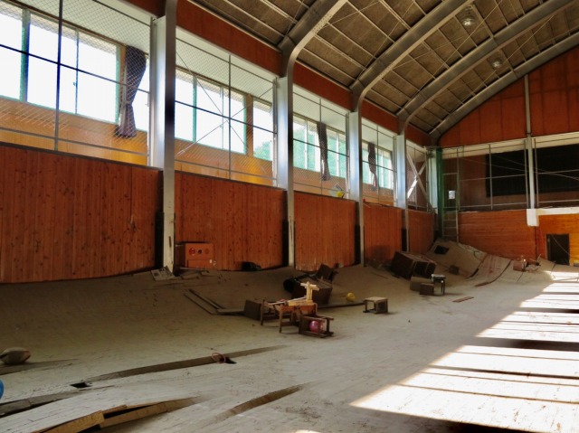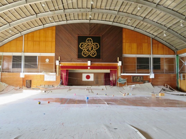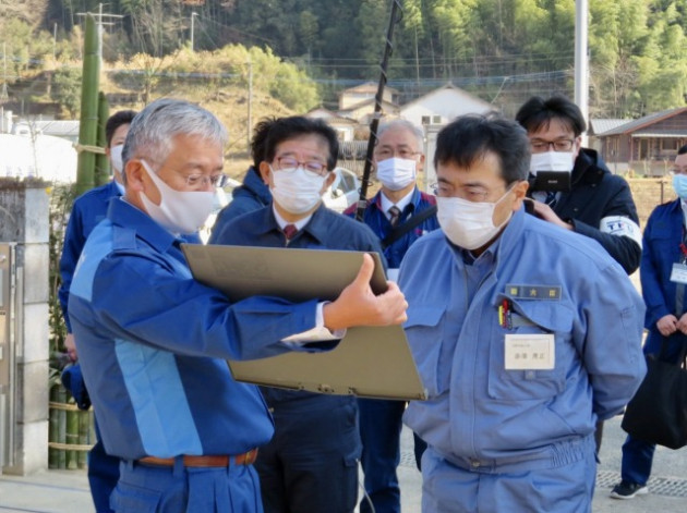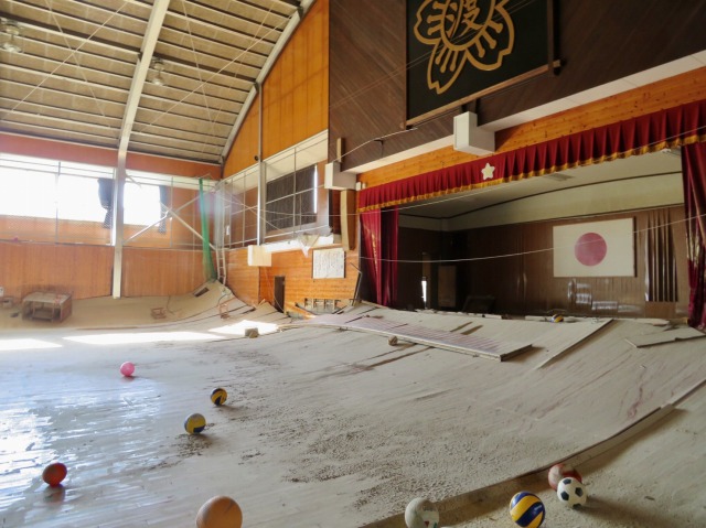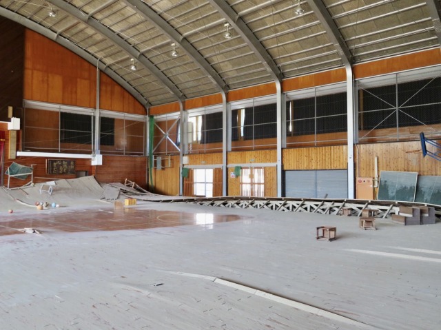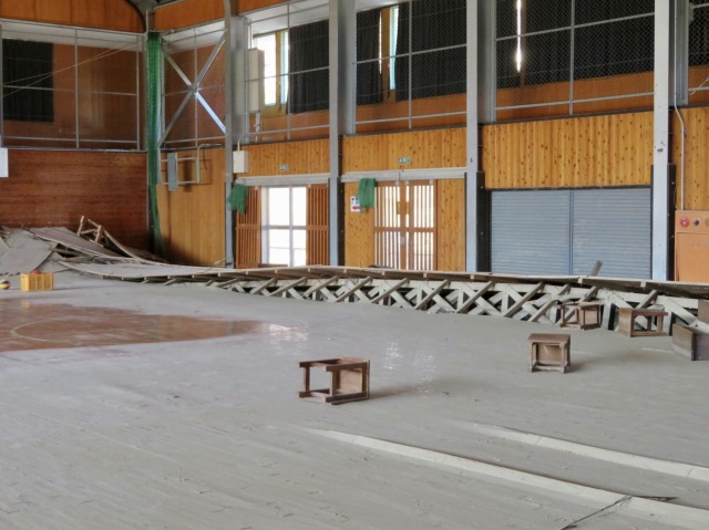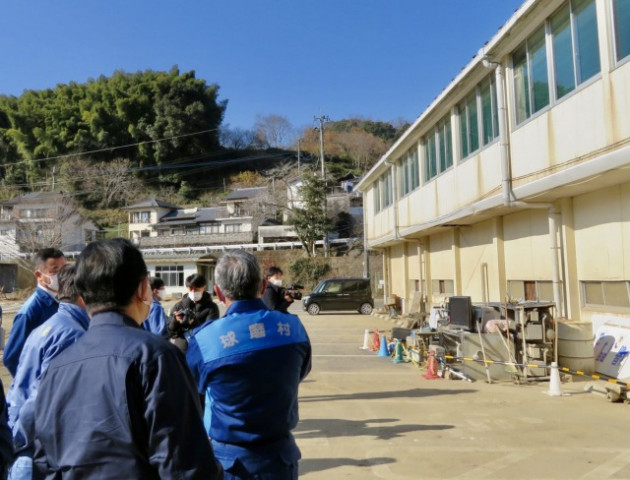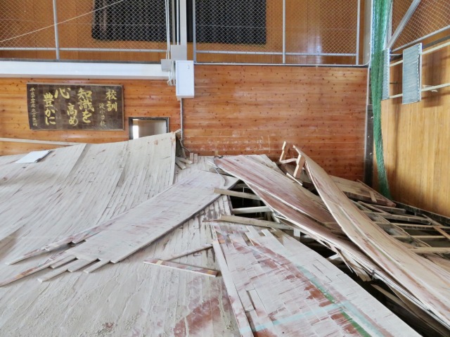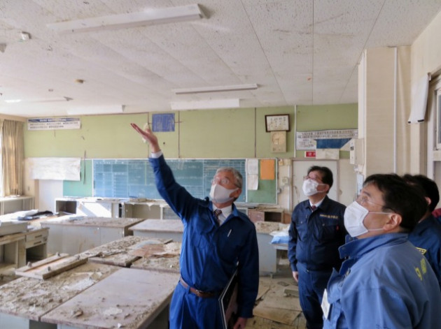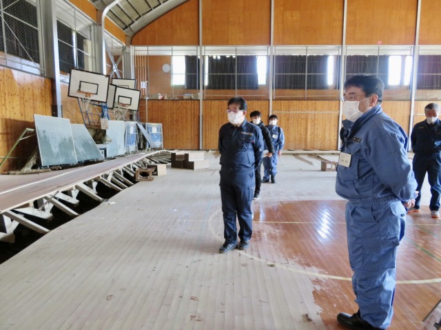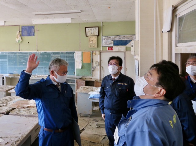 赤澤亮正 内閣府〔防災担当・新型コロナウイルス感染症対策担当〕副大臣「令和2年7月豪雨災害 被災地 ①球磨村立 渡小学校・体育館、教室 視察」に同行