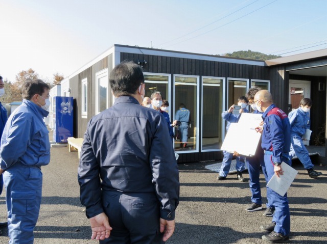 赤澤亮正 内閣府〔防災担当・新型コロナウイルス感染症対策担当〕副大臣「令和2年7月豪雨災害 被災地 ③球磨村・仮設住宅(球磨村総合運動公園) 視察」に同行