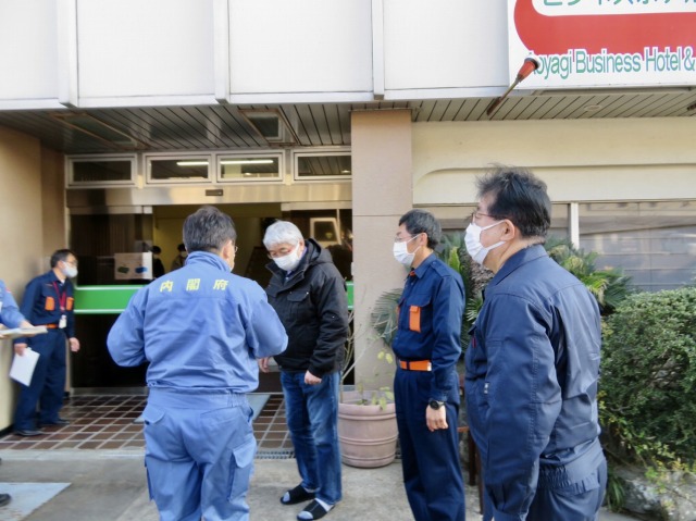 赤澤亮正 内閣府〔防災担当・新型コロナウイルス感染症対策担当〕副大臣「令和2年7月豪雨災害 被災地 ⑥人吉市・被災旅館〔みなし避難所〕 視察」に同行