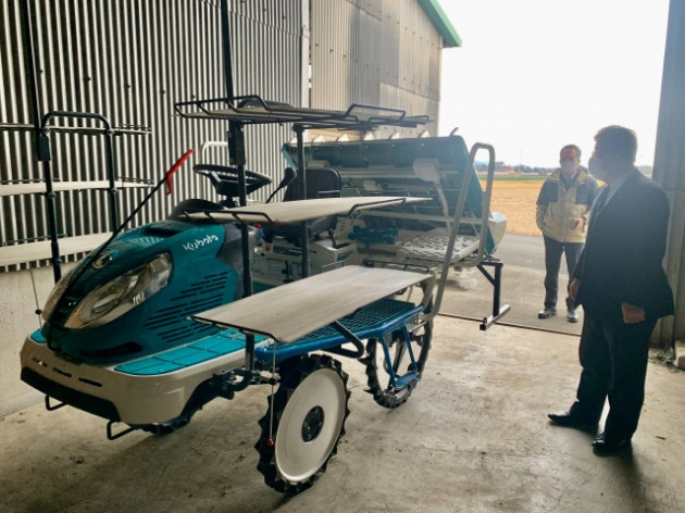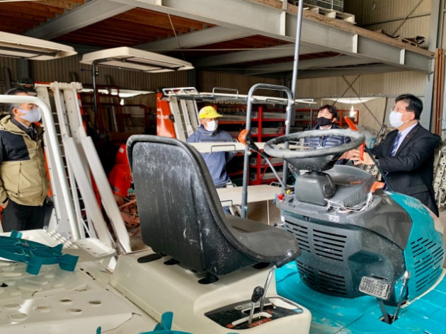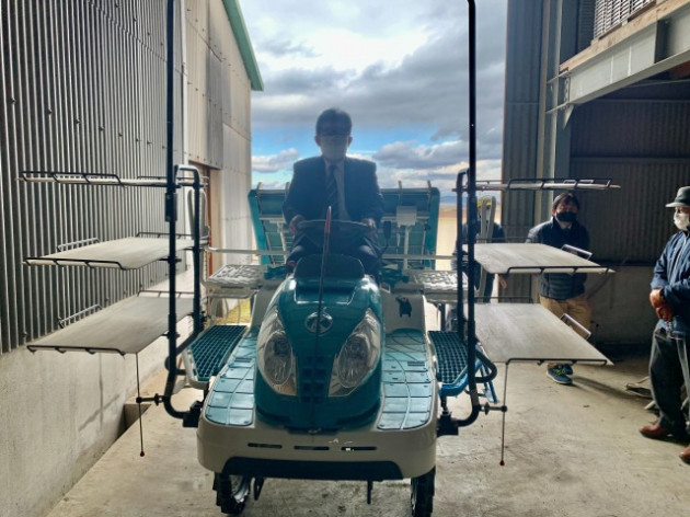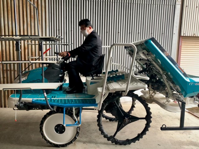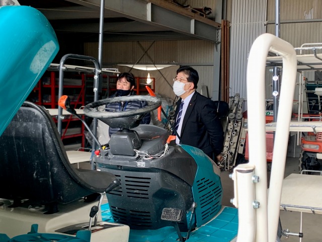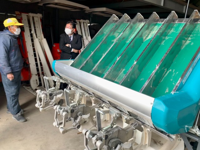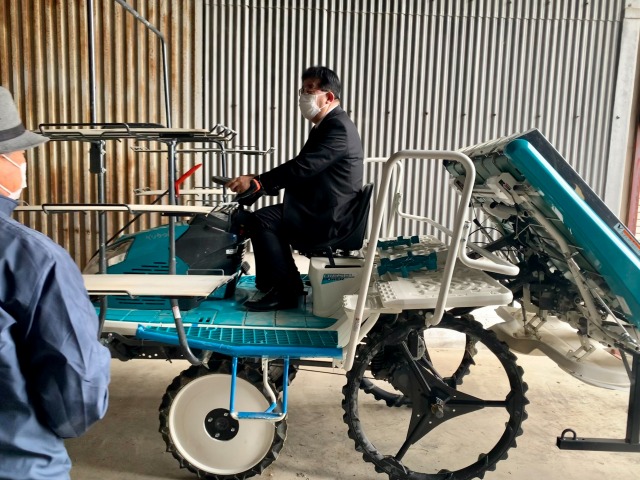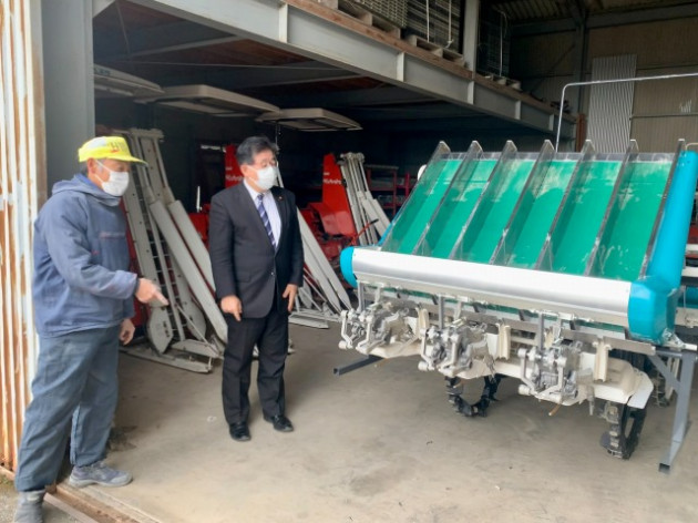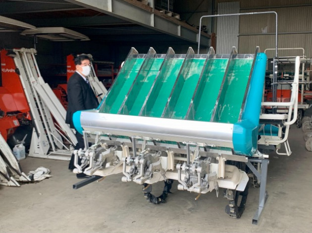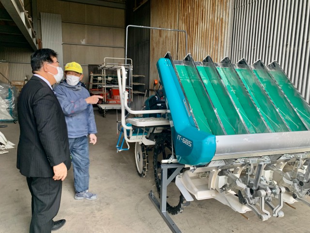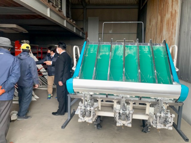 熊本県い業協同組合訪問→い草用「新型 移植機」視察(八代市 千丁町)