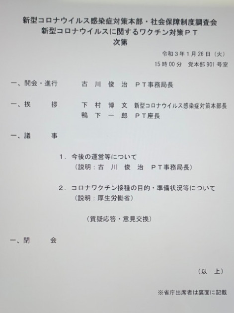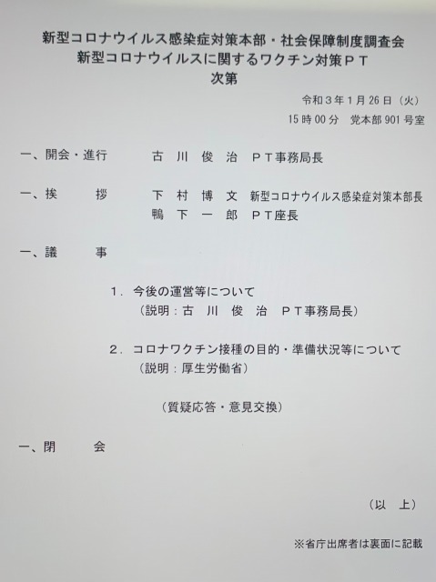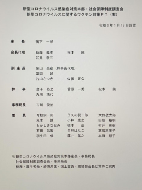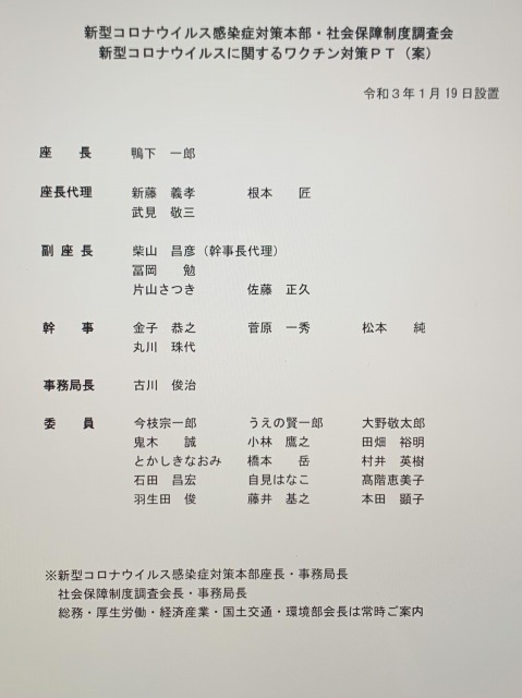 自民党 新型コロナウイルス感染症対策本部・社会保障制度調査会 新型コロナウイルスに関するワクチン対策PT ※幹事