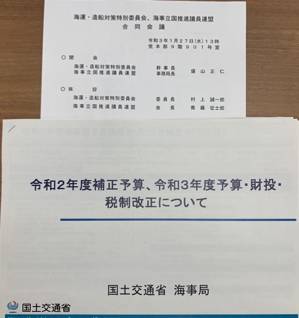 自民党 海運・造船対策特別委員会、海事立国推進議員連盟 合同会議
