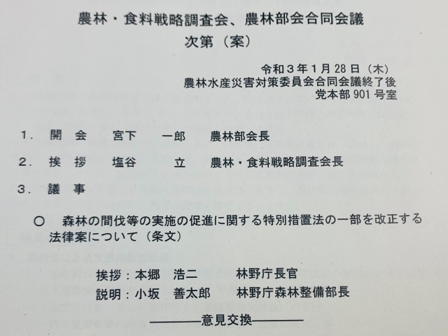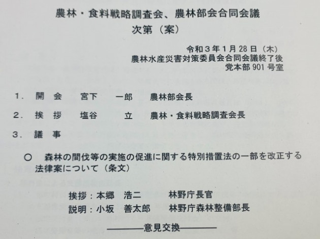 自民党 農林・食料戦略調査会、農林部会 合同会議 ※林政対策委員長として出席