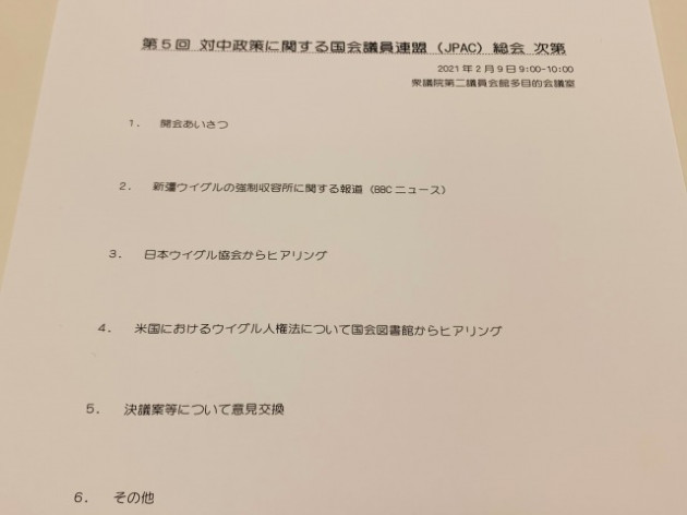 超党派「対中政策に関する国会議員連盟(JPAC)」総会