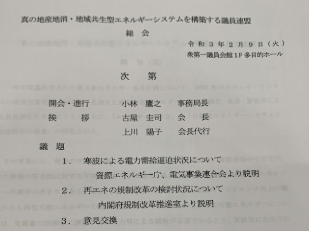 自民党 真の地産地消・地域共生型エネルギーシステムを構築する議員連盟 総会