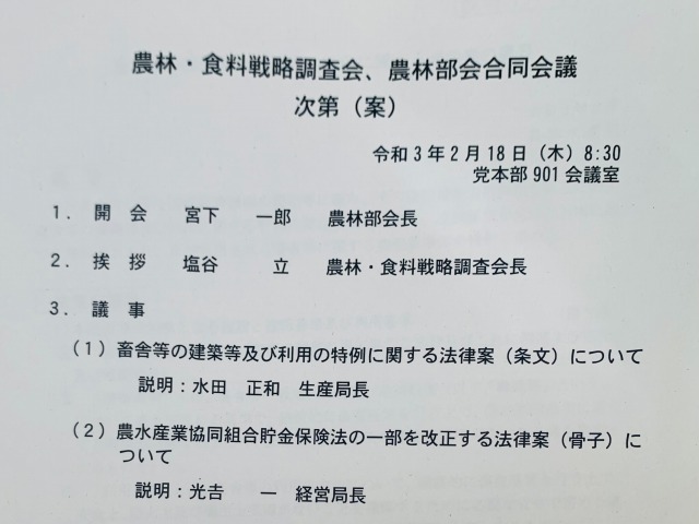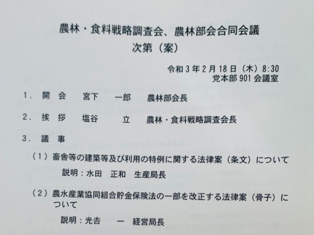 自民党 農林・食料戦略調査会、農林部会 合同会