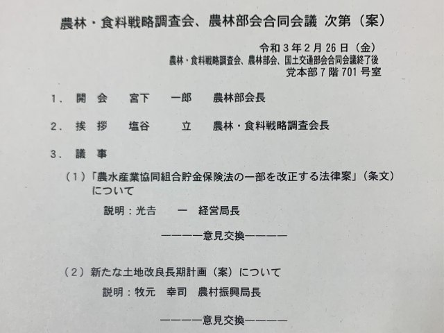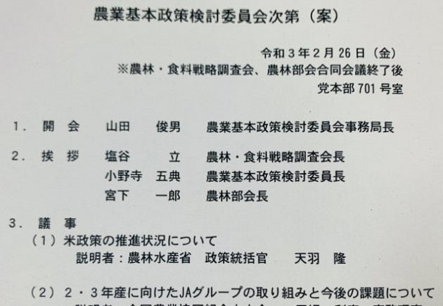 自民党 農林・食料戦略調査会、農林部会 合同会議 終了後、農業基本政策検討委員会