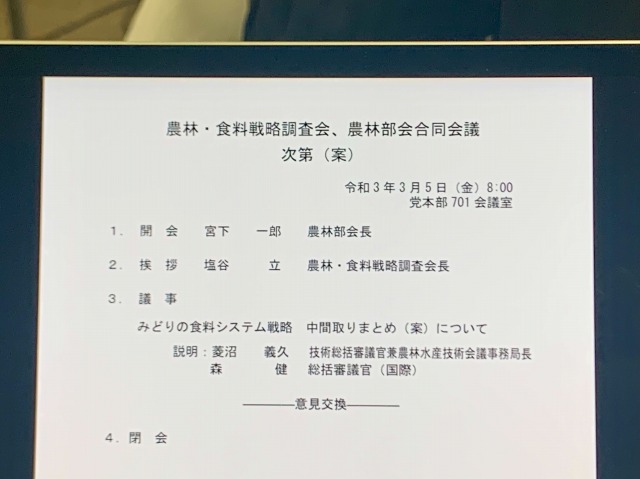 自民党 農林・食料戦略調査会、農林部会 合同会議