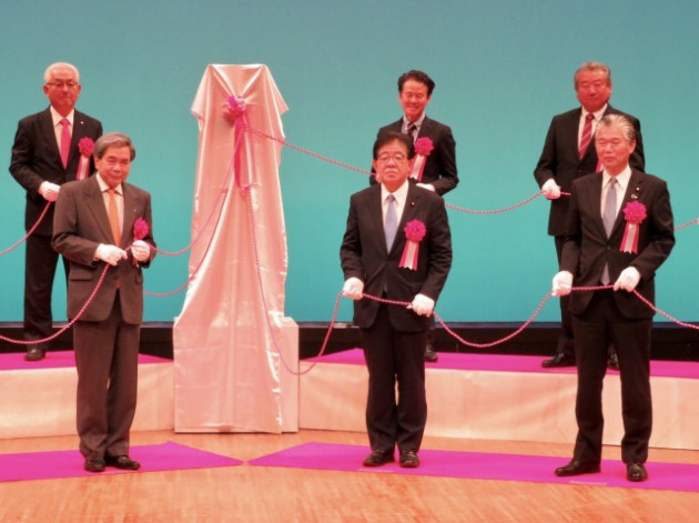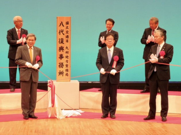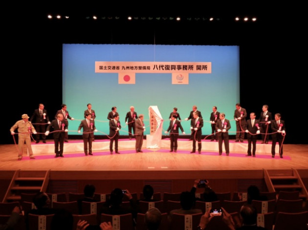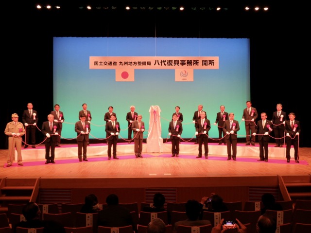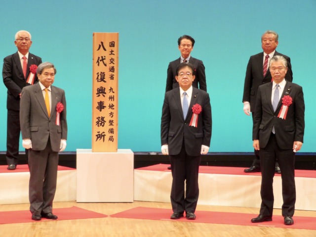 国土交通省 九州地方整備局「八代復興事務所」開所式(八代市・やつしろハーモニーホール)※看板除幕