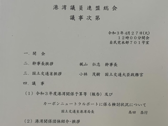 自民党 港湾議員連盟 総会 ※幹事長代行