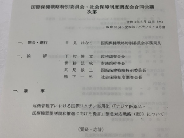 自民党 国際保健戦略特別委員会・社会保障制度調査会 合同会議