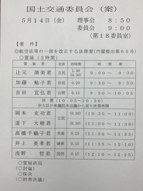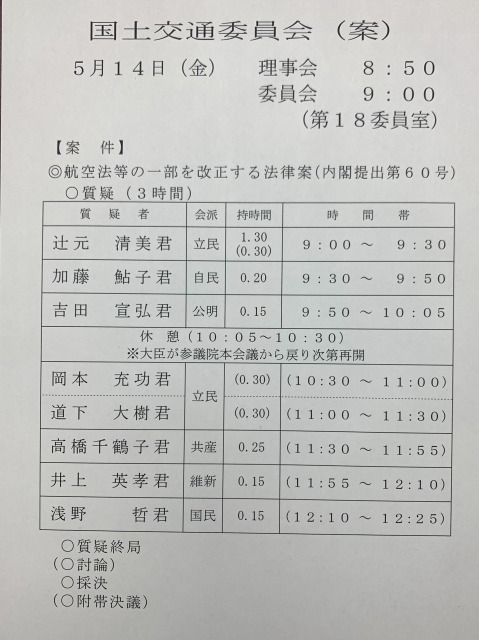 衆議院国土交通委員会「航空法改正案 質疑 3時間、採決」