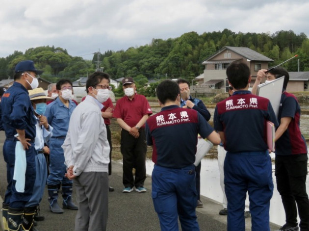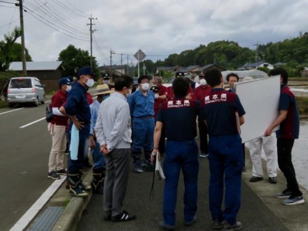 多良木町管内「県道・人吉水上線 道路改良事業」現地視察(多良木町黒肥地 3工区) ※多良木町・吉瀬町長、町議会、松田県議、熊本県球磨地域振興局土木部