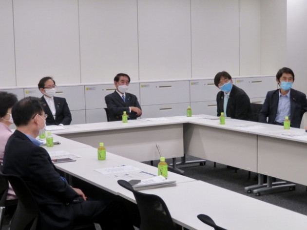与党政策責任者会議 ※「公共建築物等木材利用促進法」改正法律案を審査いただくため、自民党森林を活かす都市の木造化推進議員連盟「法改正検討WT」座長として、稲津久公明党農林水産部会長と共に出席