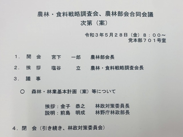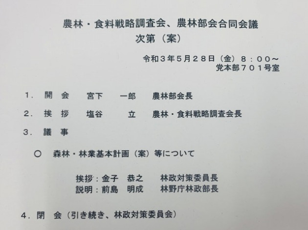 自民党 農林・食料戦略調査会、農林部会 ※林政対策委員長として出席