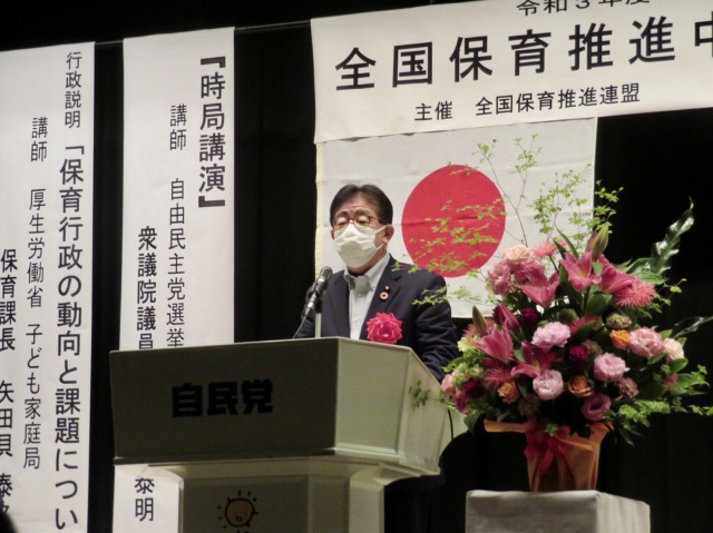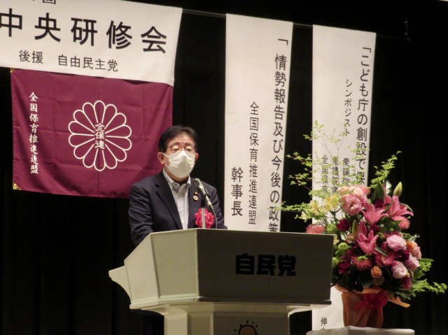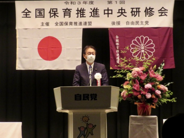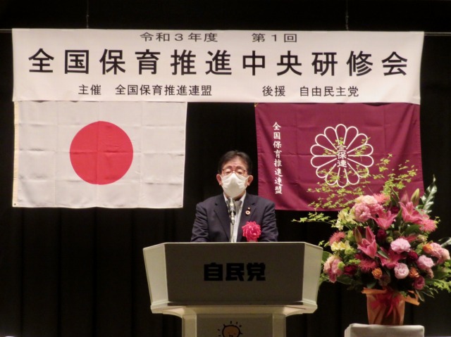 令和3年度 第1回 全国保育推進中央研修会(自民党本部8Fホール) ※自民党全国保育関係議員連盟・事務局長として挨拶