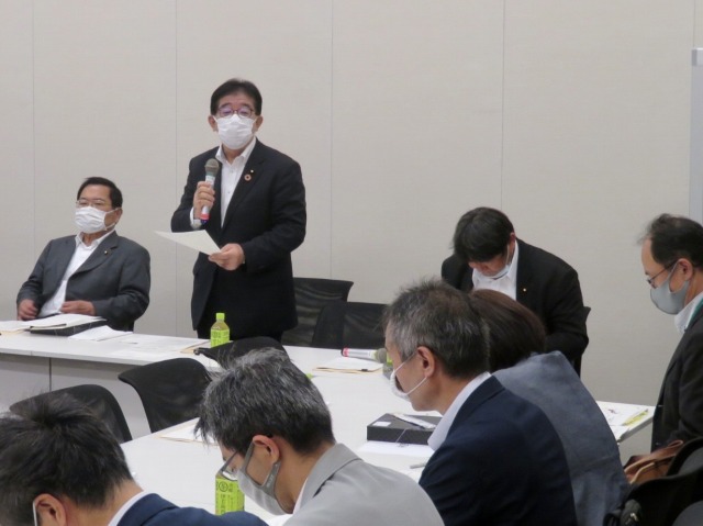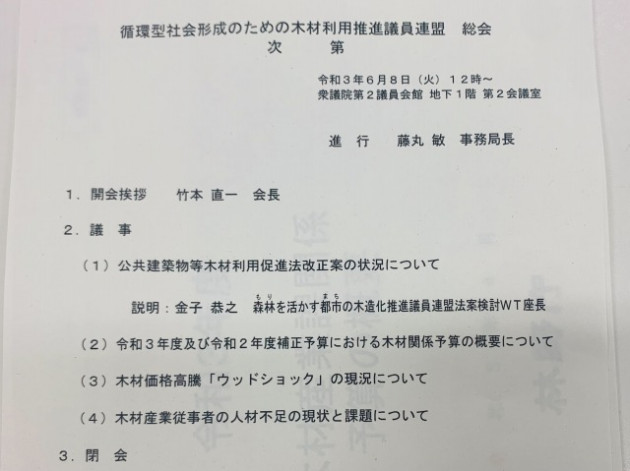 自民党 循環型社会形成のための木材利用推進議員連盟 総会 ※森林を活かす都市の木造化推進議員連盟 法案検討WT座長として「公共建築物等木材利用促進法 改正法律案」説明
