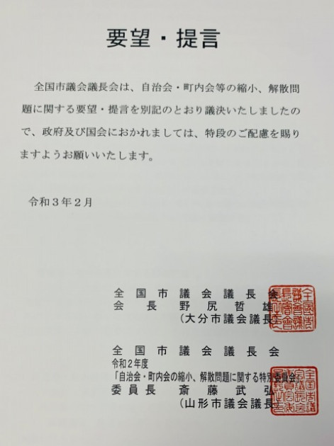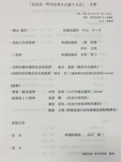 自民党 自治会・町内会等を応援する会 ※八代市議会・中村和美議長 要望・提言説明(リモート出席)