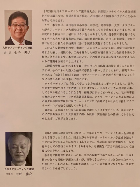 「 第28回 九州チアリーディング選手権大会 」( 福岡市総合体育館 ) ※大会 会長〔 九州チアリーディング連盟 会長 〕