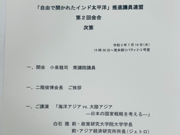 自民党「自由で開かれたインド太平洋」推進議員連盟 会合 ※副会長