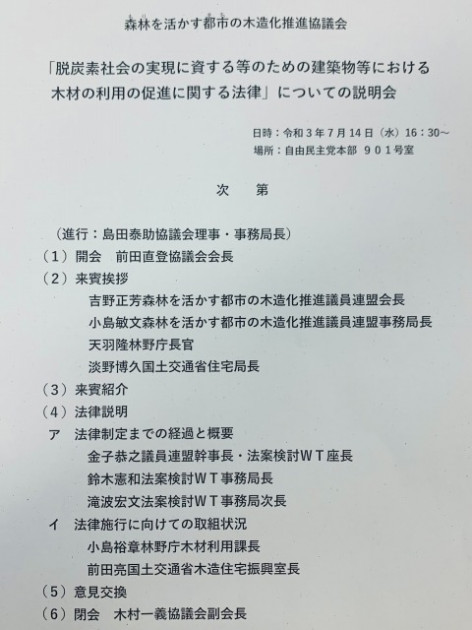 森林を活かす都市の木造化推進協議会「脱炭素社会の実現に資する等のための建築物等における木材の利用の促進に関する法律」についての説明会 ※森林を活かす都市の木造化推進議員連盟 幹事長 兼 法案検討WT座長として法案説明
