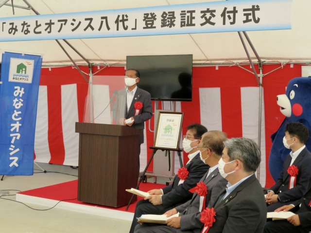 国土交通省『みなとオアシス八代』登録証交付式 (くまモンポート八代 内)並びに くまモンパーク見学会