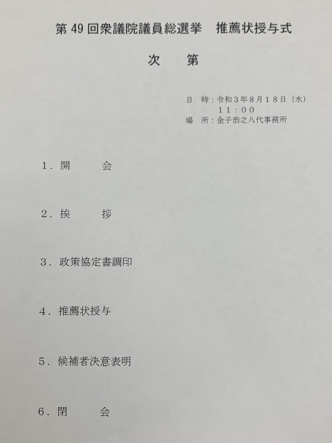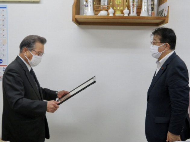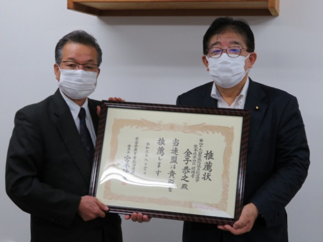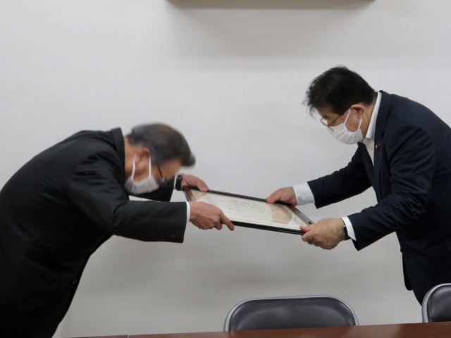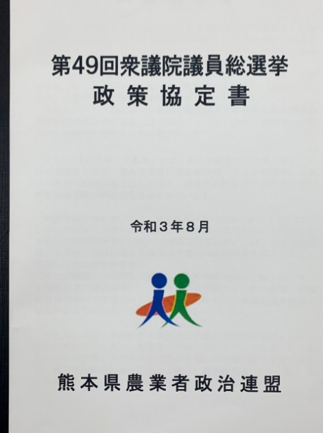 熊本県農業者政治連盟「第49回 衆議院議員総選挙 推薦状授与式」(金子恭之八代事務所) ※熊本県農業者政治連盟・宮本隆幸委員長 来所