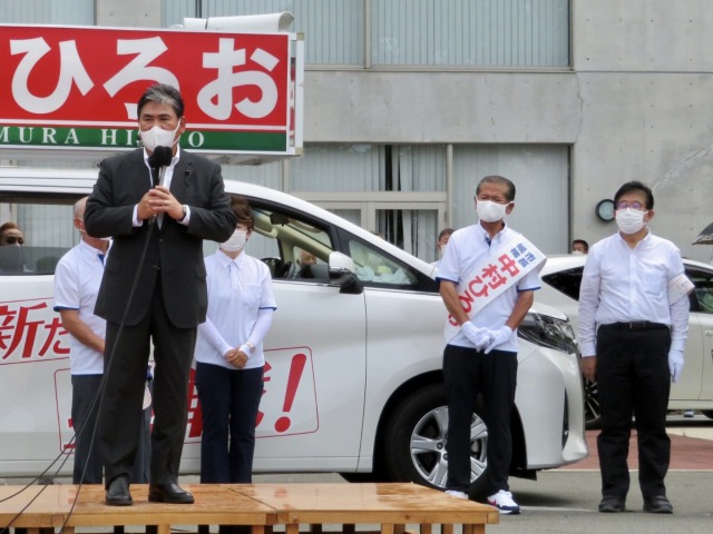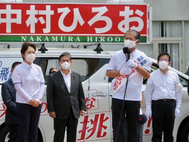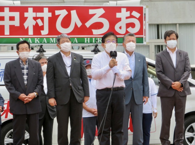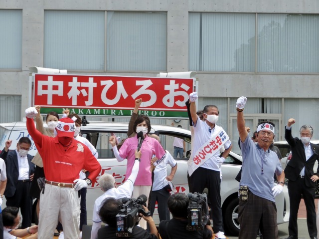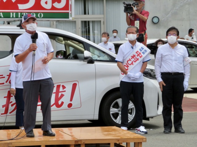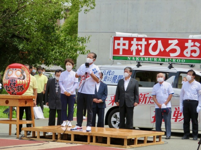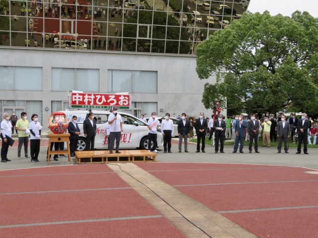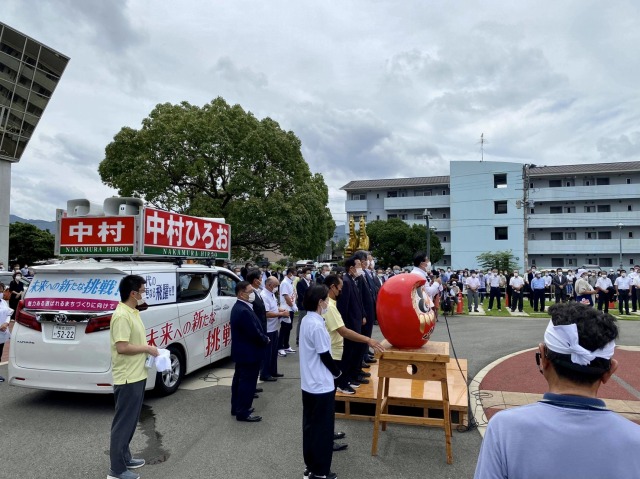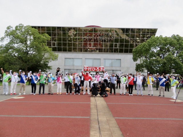 〔 八代市長 選挙・八代市議会議員 選挙 告示日 〕八代市長候補 中村ひろお・(自民党・保守系)八代市議会議員候補「 合同出陣式 」( ハーモニーホール 広場 ) ※中村ひろお選挙対策本部長