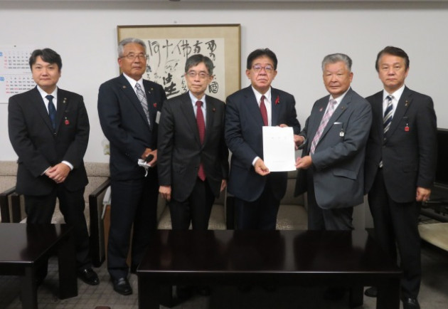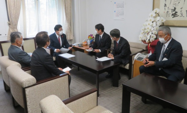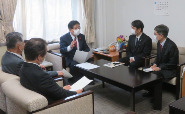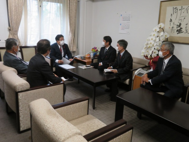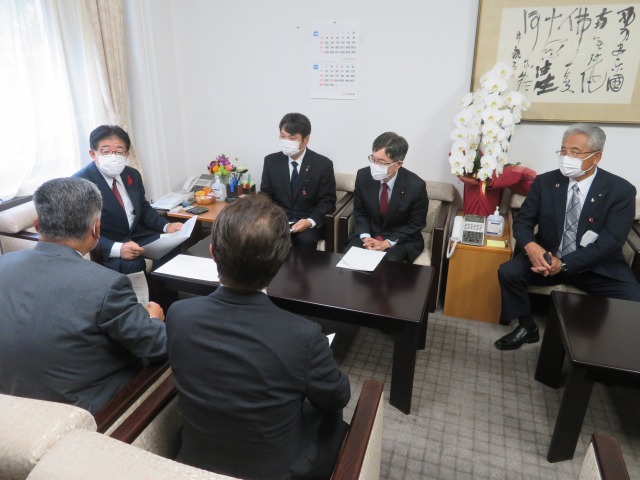 衆議院議員・寺田稔先生、旧軍港市議会議長会〔呉市・北川議長、横須賀市・大野議長、舞鶴市・山本議長、佐世保市・田中議長〕要望来室 ※参議院総務省控室にて