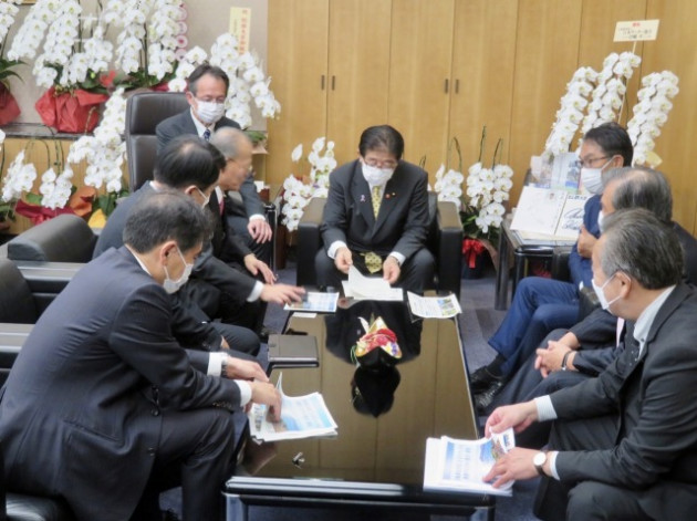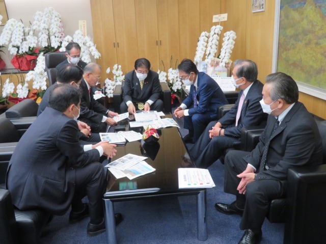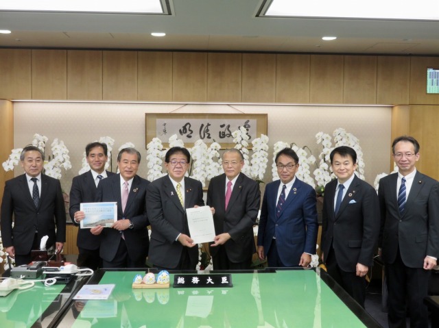 自転車を活用したまちづくりを推進する全国市区町村長の会 要望来室(総務大臣室) ※超党派 自転車活用推進議員連盟 幹事長