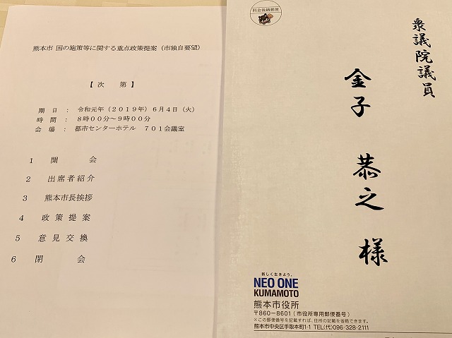 熊本市「国の施策等に関する重点政策提案、意見交換会」