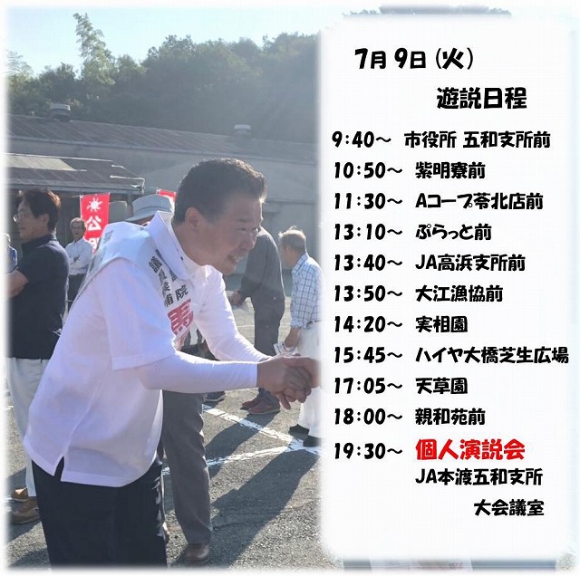 馬場せいし参議院議員候補「遊説〔天草市・苓北町〕」に熊本県第四区選挙長として同行